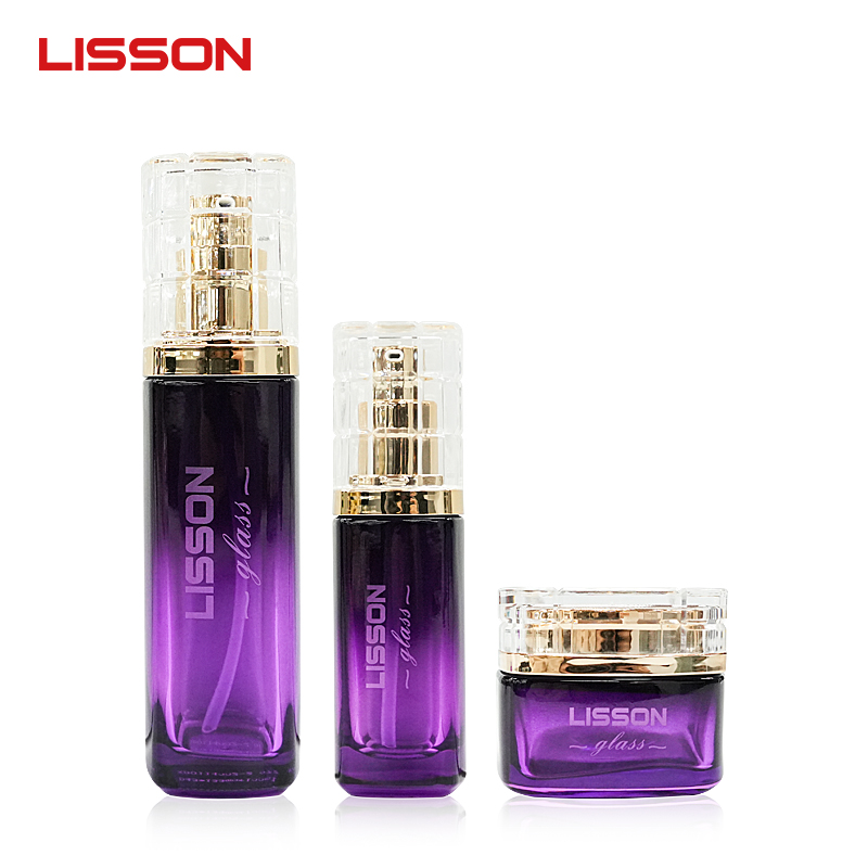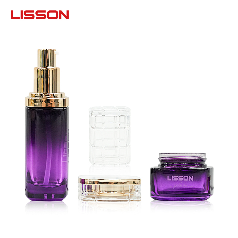 Logo, Color, ShapeOmbre Purple Glass Cosmetic Set – Pump Bottles & Cream Jars