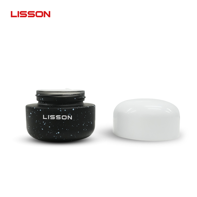 Add elegance to your skincare line with this premium glass cream jar featuring a black speckled finish and a glossy white screw cap. Designed for luxury creams and balms, this jar ensures both style and functionality.